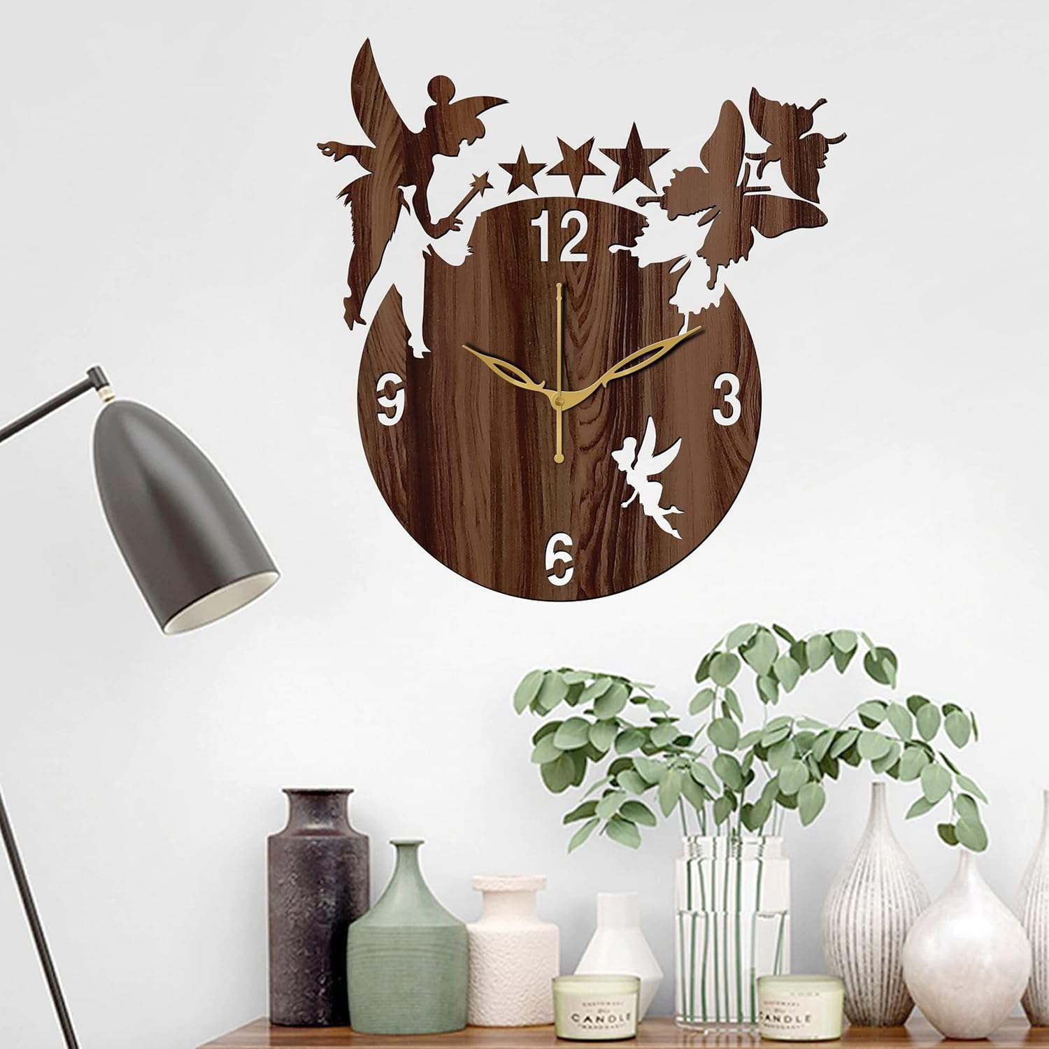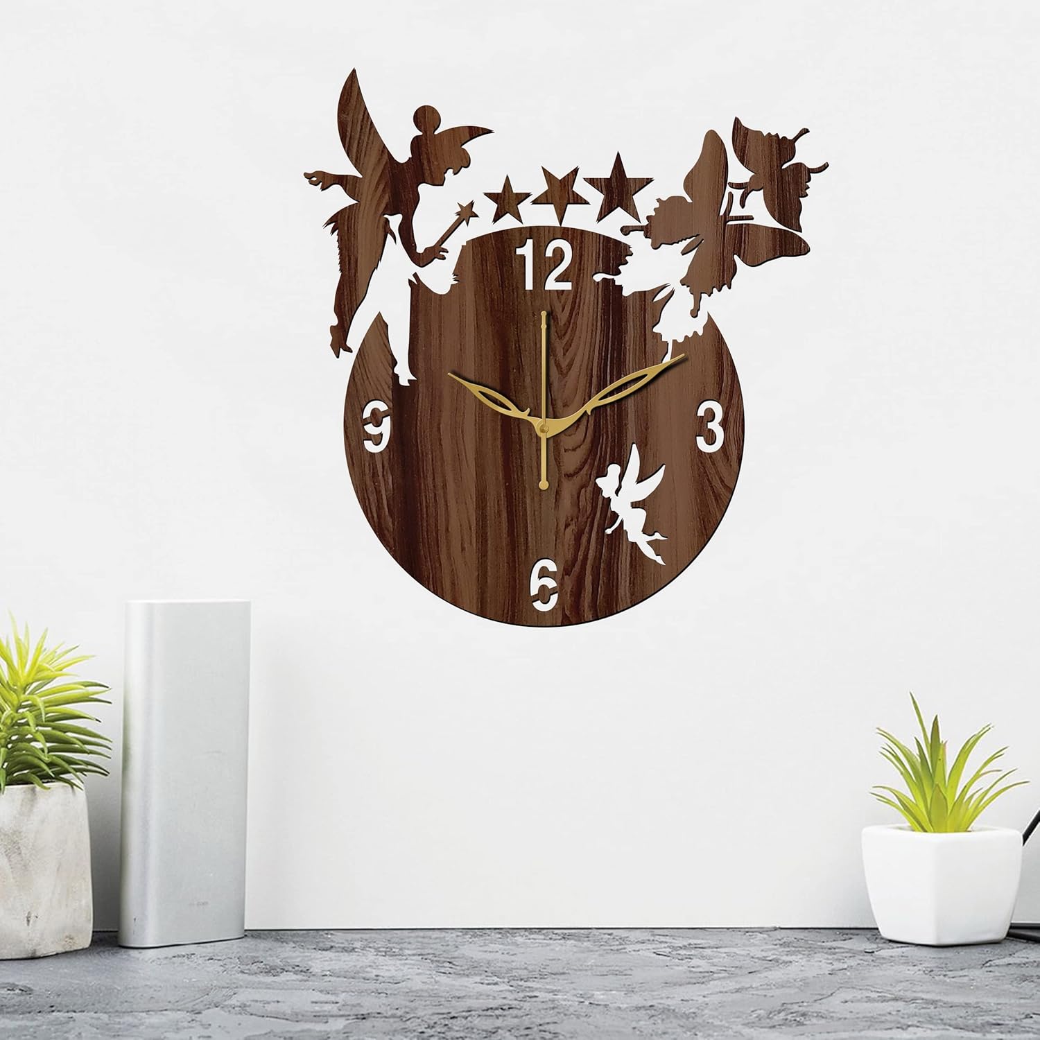 Enhance your interior space with the graceful charm of the Wooden English Numeral Angel with Stars Wall Clock, a beautifully crafted timepiece that blends antique aesthetics with dependable functionality. Designed for those who appreciate classic décor and meaningful art, this wall clock features an elegant angel motif surrounded by delicate stars, symbolizing peace, protection, and serenity. Made from premium MDF wood and finished in a warm wooden brown tone, this clock is more than just a way to tell time—it is a statement of refined taste.