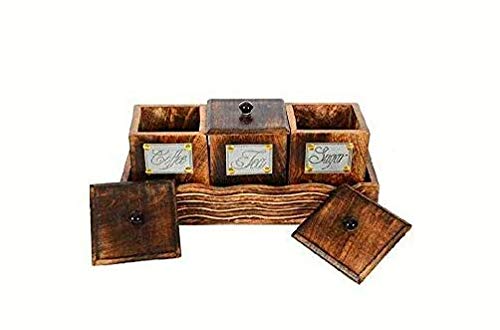 Wooden Handicraft Handmade Container Set for Tea, Sugar & Coffee with Lid