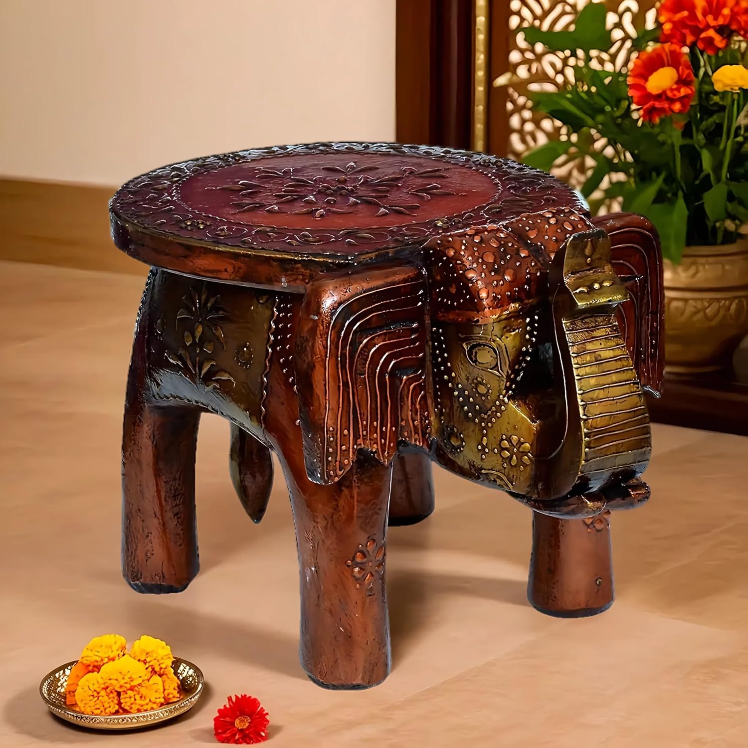Wooden Handpainted Elephant Stool Showpiece – Antique Copper Finish | Elegant Home & Office Décor Piece