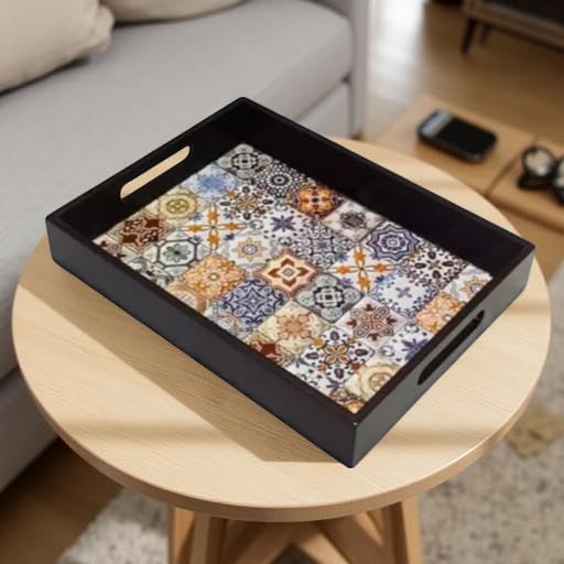 Transform your serving experience with the Wooden MDF Decorative Serving Tray with Mosaic Pattern, a perfect blend of art, functionality, and sophistication. Designed to impress, this tray elevates your home décor with its artistic mosaic tile work, sleek black frame, and durable construction, making it a must-have accessory for modern homes.