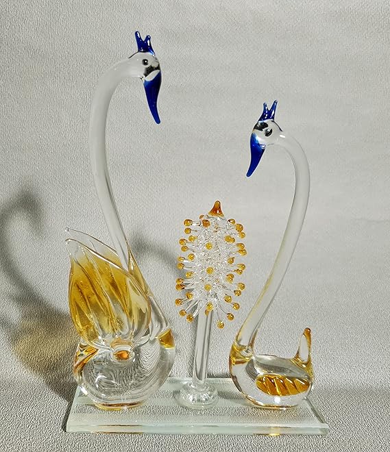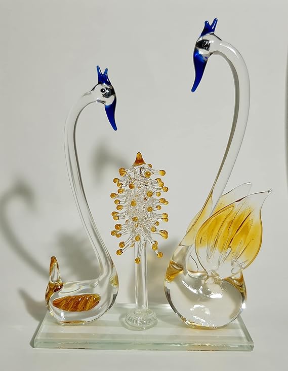 Perfect for living rooms, bedrooms, offices, or hallways, this showpiece symbolizes love, harmony, and natural beauty. Its unique artistic design also makes it an ideal gift for weddings, anniversaries, housewarmings, or special occasions. Durable, elegant, and eye-catching, this yellow glass swan with tree sculpture brings a touch of creativity and luxury to every space.