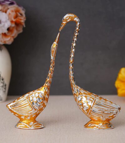 - Package Contains: 1 Unit Of Jaipur Crafts Pair Of Kissing Duck Swan Couple Showpiece – 27 cm (Aluminum, Multicolor)