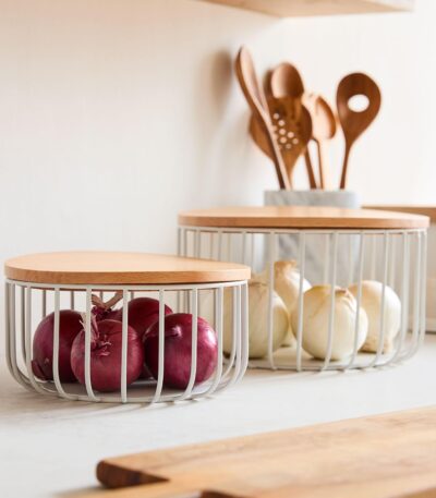 The double-layer design provides ample space for a variety of produce. Perfect as a fruit stand, vegetable holder, or onion–potato rack, it helps you utilise vertical space effectively while maintaining easy access to stored items.